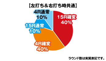 通常時からの8個保留を採用しており、ヘソ・電チュー共通で15R確変が40%、15R通常が10%となっている。