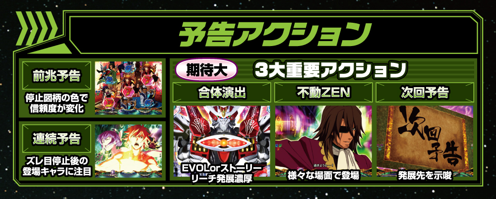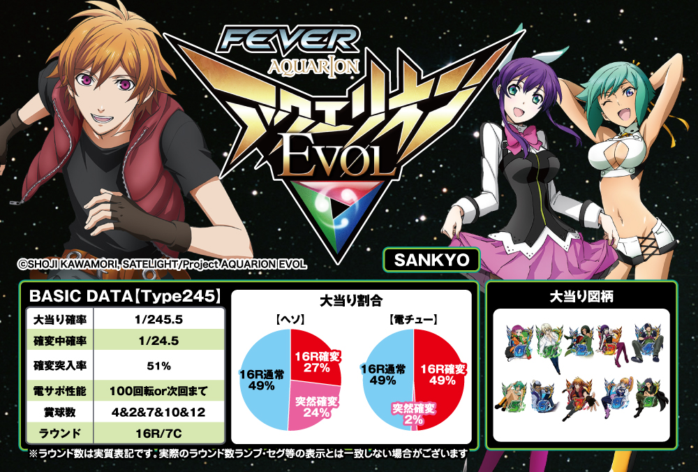 合体するアクエリオン役モノのほか、5ライン・ズレ目といった初代からの楽しさを継承しつつ、新リーズ「EVOL」にあわせて一新された演出にも注目しよう。