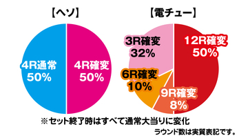 最強きゅんきゅんタイム中は、告白成功で大当りとなり、12R比率が50%となっている。