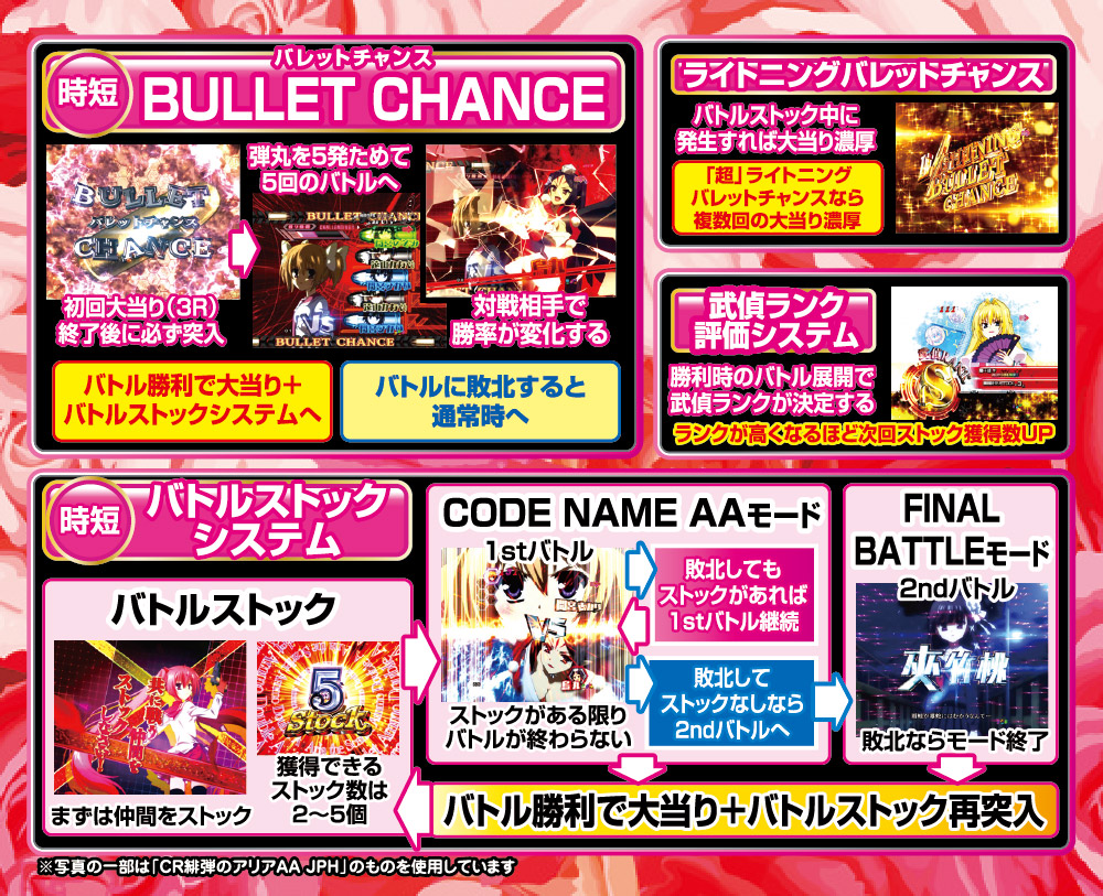「CODE NAME AAモード」は、バトル勝利(=大当り)、または敗北でストックが無くなるまで継続する。