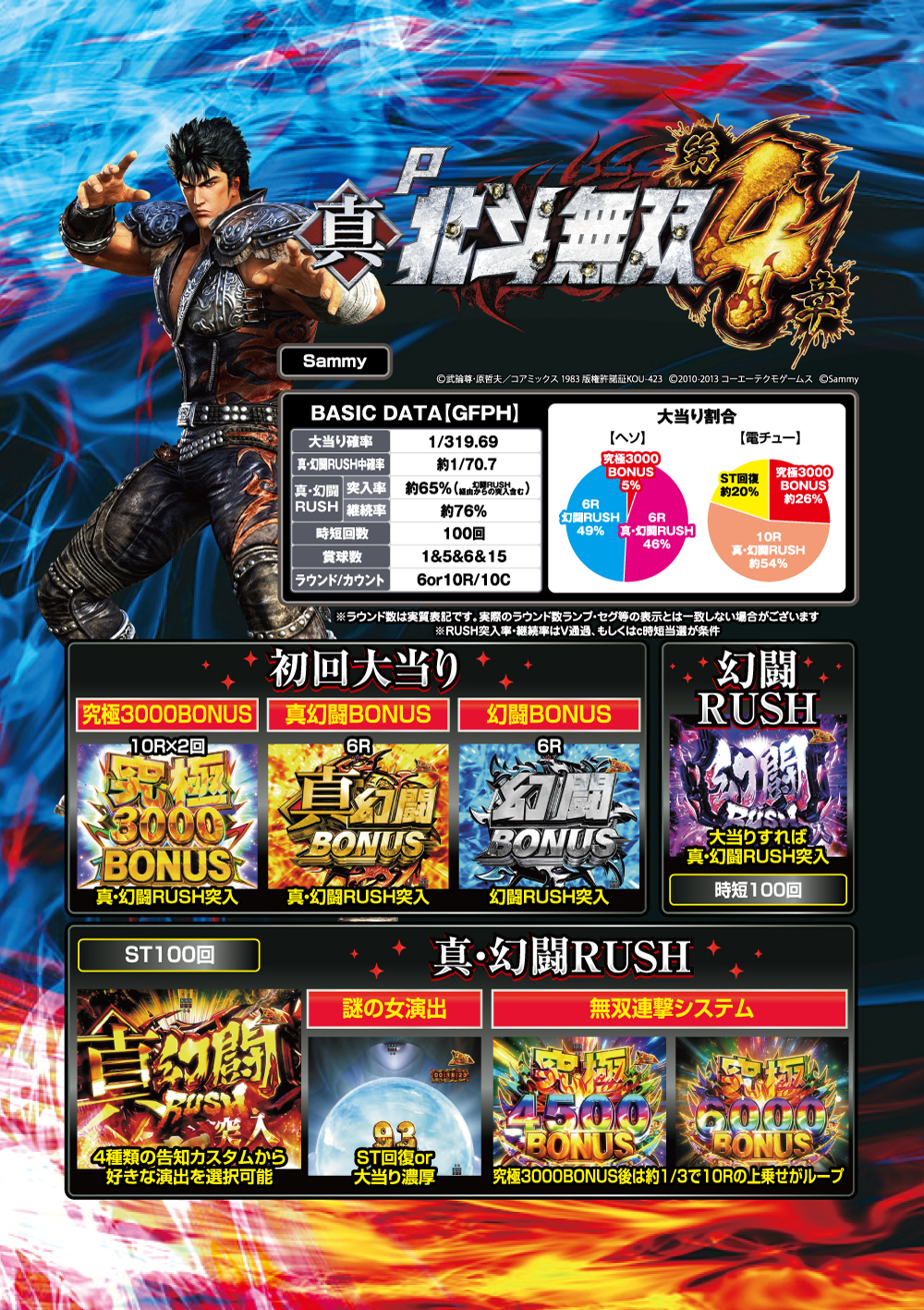 継続率約76%の右打ちモード「真・幻闘RUSH」(以降、ST)を搭載している。