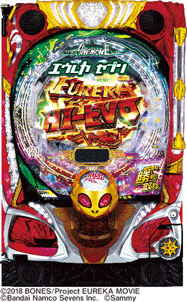 RUSHは電サポ100回で、大当りの50%が10R+RUSH継続、残り50%で10R+上位RUSH「HI-EVO」(電サポ139回)突入だ。