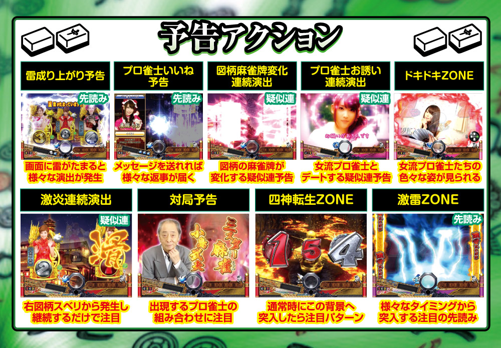 演出面では、金色予告、激雷ZONE、名作ドラは恋人リーチなどに注目しよう。