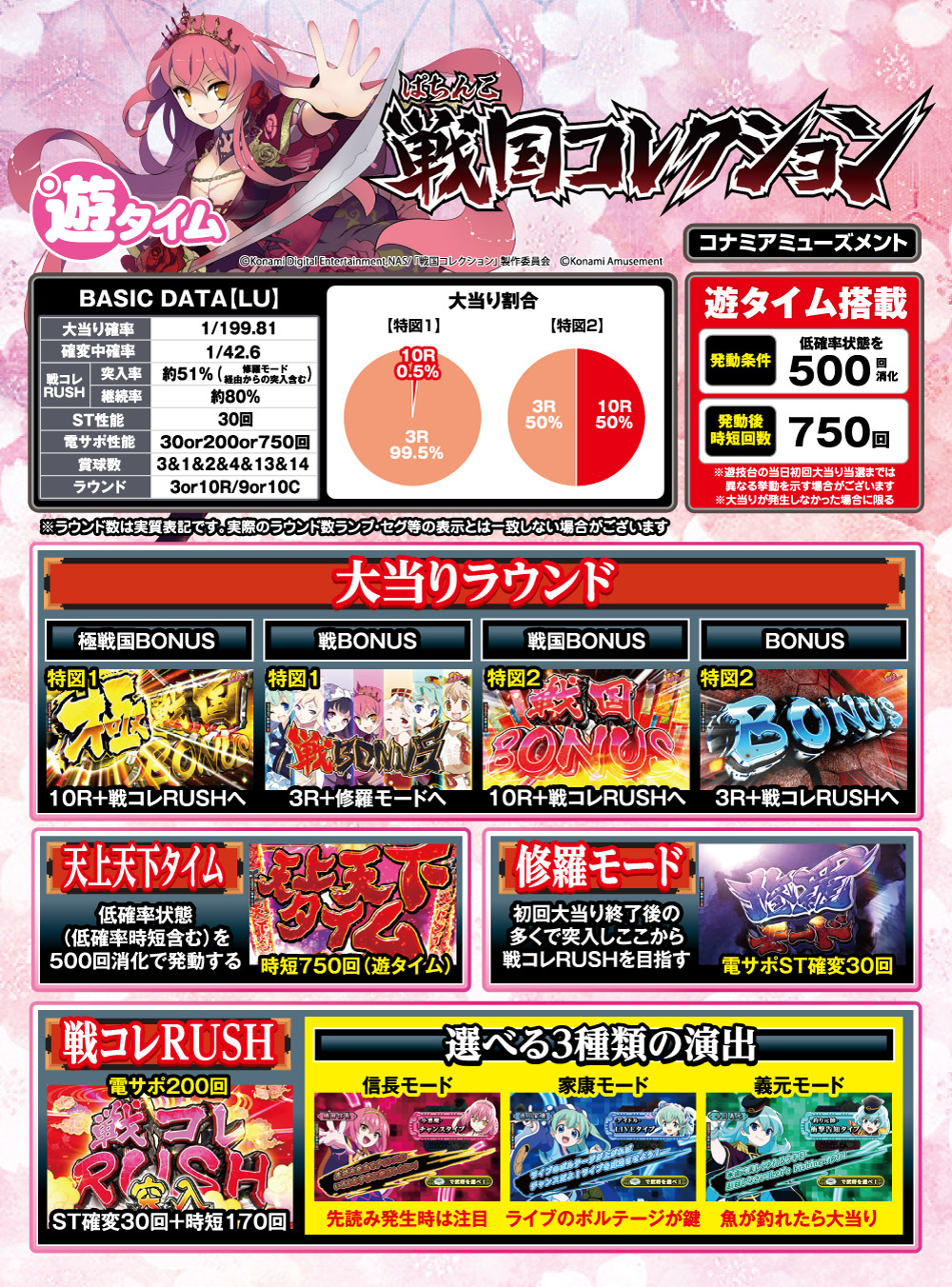 消化中に大当りを引ければ、電サポST確変30回+時短170回の「戦コレRUSH」(以下、RUSH)へ突入する。