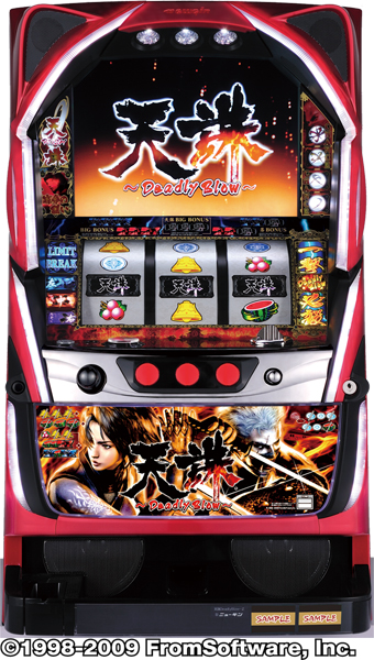 世界中で人気を集める“忍”アクションゲーム「天誅」をモチーフとしたパチスロ機。ART機能である「天誅RUSH」は、基本の40Gと、継続か否かを決定する演出バトルで構成され、1Gあたり約1.5枚増。ART中にボーナス成立なら「リミットブレイク」突入の可能性があり、そこで押し順ナビの正解を続ければ最大で500Gの加算が発生!? また、出現率1/16384の「天誅ビッグボーナス」というプレミアム役も搭載。
