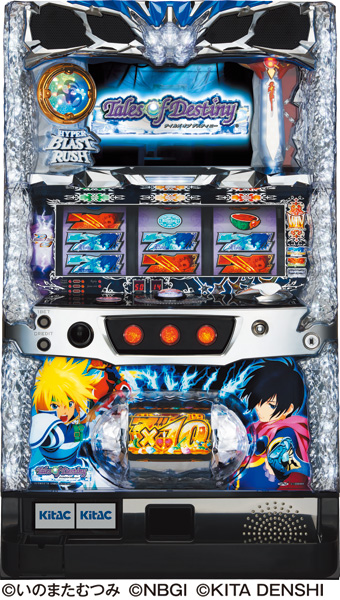 本機は、運命の4方向レバーによるガチ抽選や下パネルに搭載されたロングフリーズ時に開放する運命のルーレットによるボーナスストックといった新機能を搭載。純増約2.2枚のARTによる擬似ボーナス「テイルズ オブ ボーナス」は青7揃いのスーパーBIG(100G)、赤7揃いのBIG(40~100G)、BAR揃いのREG(20Gで、BIGへの昇格抽選あり)の3種類がある。また、ボーナスストック特化ゾーン「ディスティニーゾーン」、RUSH図柄が揃うたびディスティニーゾーンをストックする「ブラストラッシュ」、敵に攻撃するたびにボーナス(青7or赤7)やブラストラッシュをストックする「ファイナルエピソード」と、3つの上乗せゾーンが存在。