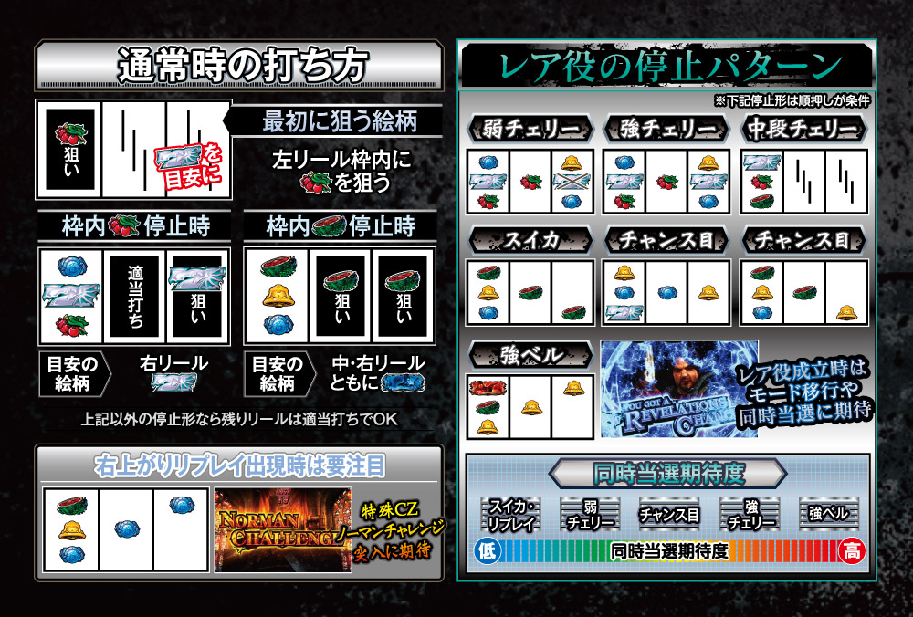 通常時からは、ボーナス「リべレーションズチャンス」がART突入のメイン契機となり、ボーナス終了後に必ず突入する判定演出に成功すればART突入となる。