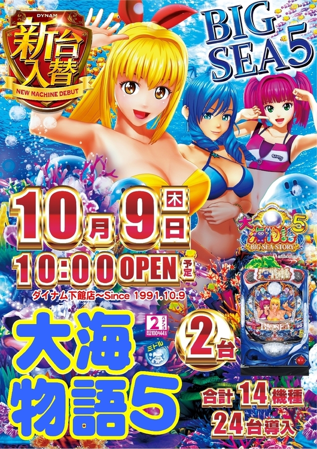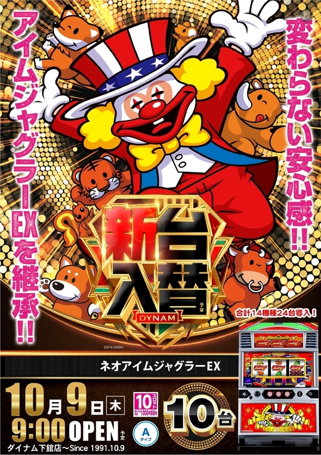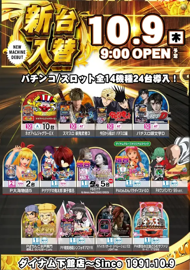 10月9日(木) ★NEW★☆★NEW★☆★NEW★☆★NEW★☆★NEW★ 新台入替 9時オープン(予定) ★NEW★☆★NEW★☆★NEW★☆★NEW★☆★NEW★