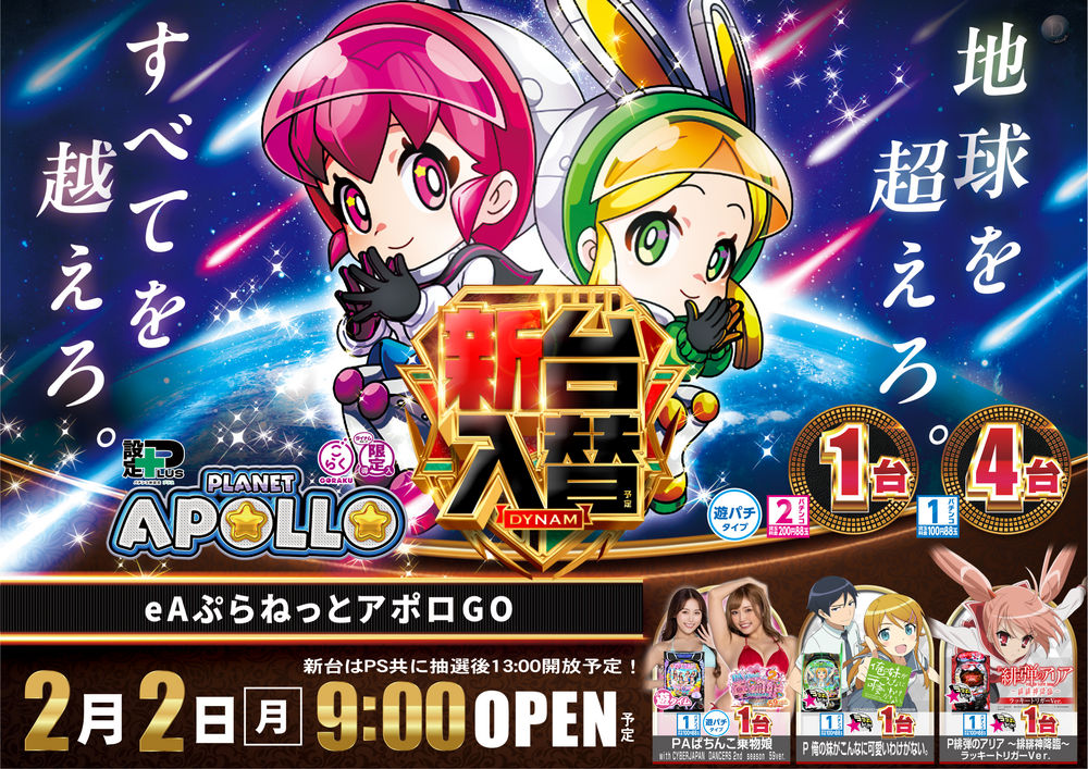 eAぷらねっとアポロ 4台 ※こちらの機種は2パチンコにも1台導入します。