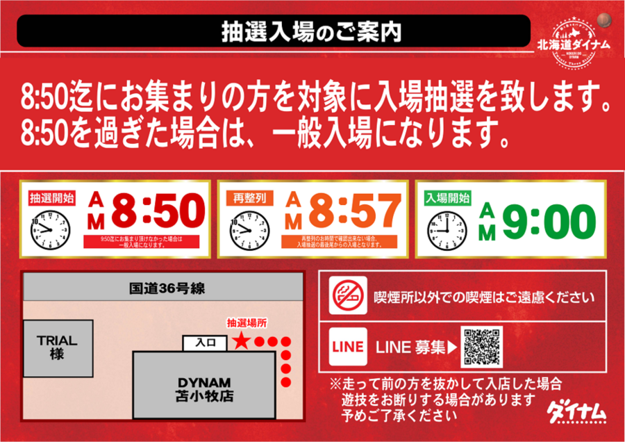 ■9時開店の場合 ⇒ 抽選時間 8:50(予定)