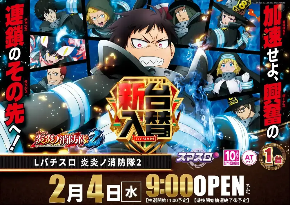 10スロット≪1000円88枚≫ ★Lパチスロ 炎炎ノ消防隊2 1台
