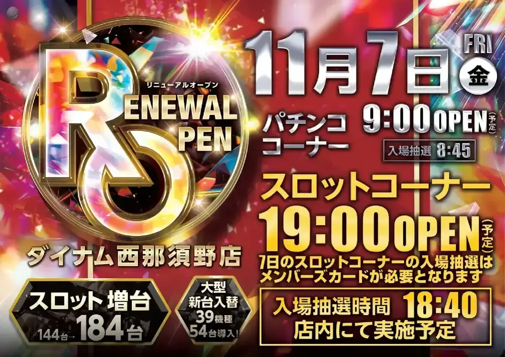 ※パチンココーナーは9:00開店(入場抽選8:45)