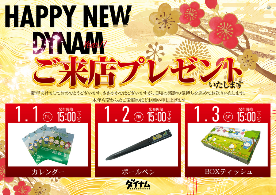 1月1日(木)~3日(土)は