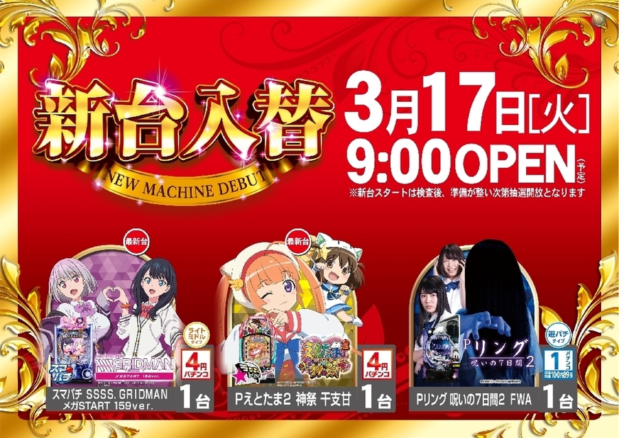 3月17日【火】新 台 入 替(予定)