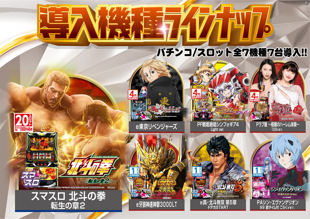 以上 最新台から人気機種を 7機種7台を導入しております