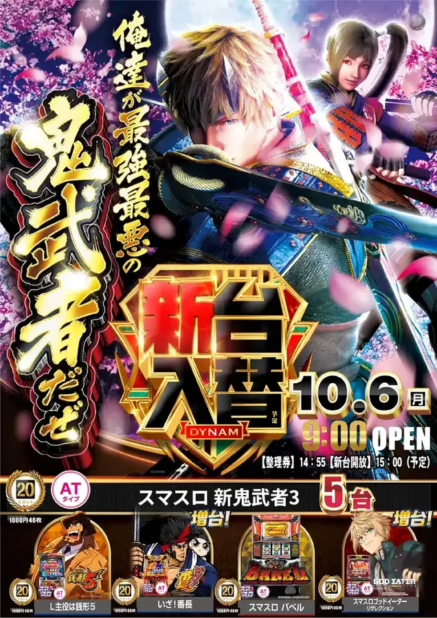 【新台整理券配布)14:55【新台開放】15:00(予定) 機種名をクリックすると機種情報を見ることができます♪ |