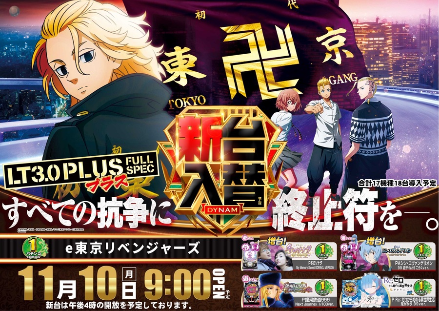 ■1000円88枚スロット L スマスロ東京リベンジャーズ ZF 1台 LからくりサーカスG 1台 ■500円88枚スロット L麻雀物語S2 1台 |