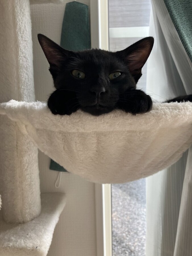 メスの黒猫で名前は「ツキ」です![]()