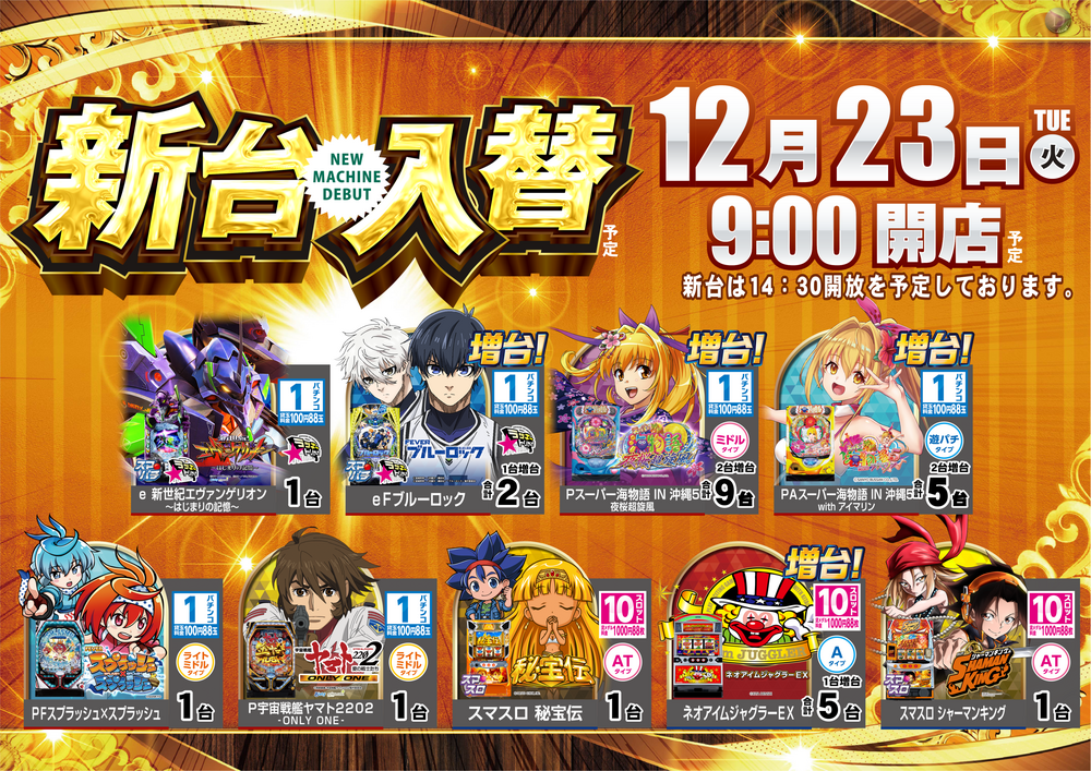 新台は準備が整い次第、ご遊技できます