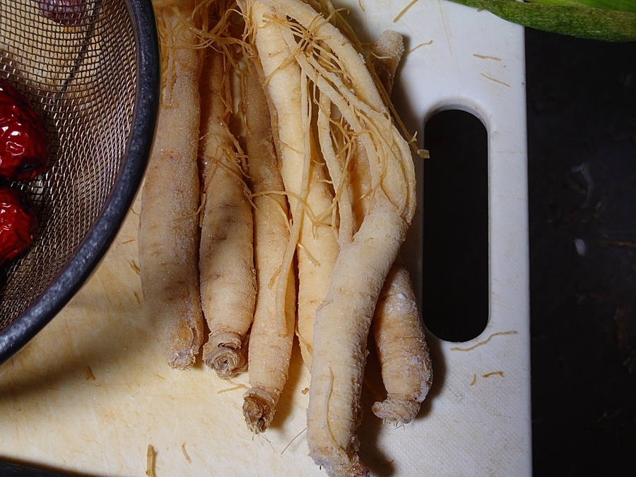 高麗人参はポリポリかじるとちょっと硬くて苦いですが、なんとも効きそうな味。仕上げの前にゴボウのように食べやすい大きさに切っても良いでしょう。