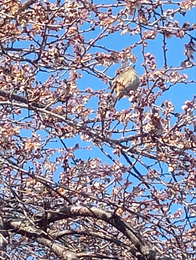 駐車場から鳥居までで 息があがったのでひと休み(笑) 早咲きの桜 と 綺麗な声の鳥 にめちゃくちゃ 癒されました |