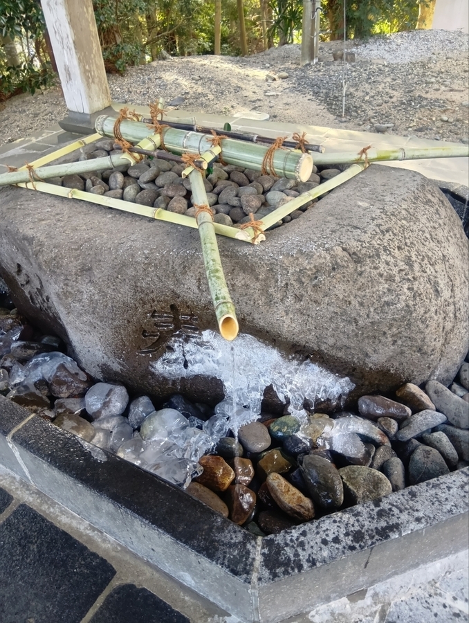 でもまだまだ寒いので 手手水はご覧の通り 凍ってました |