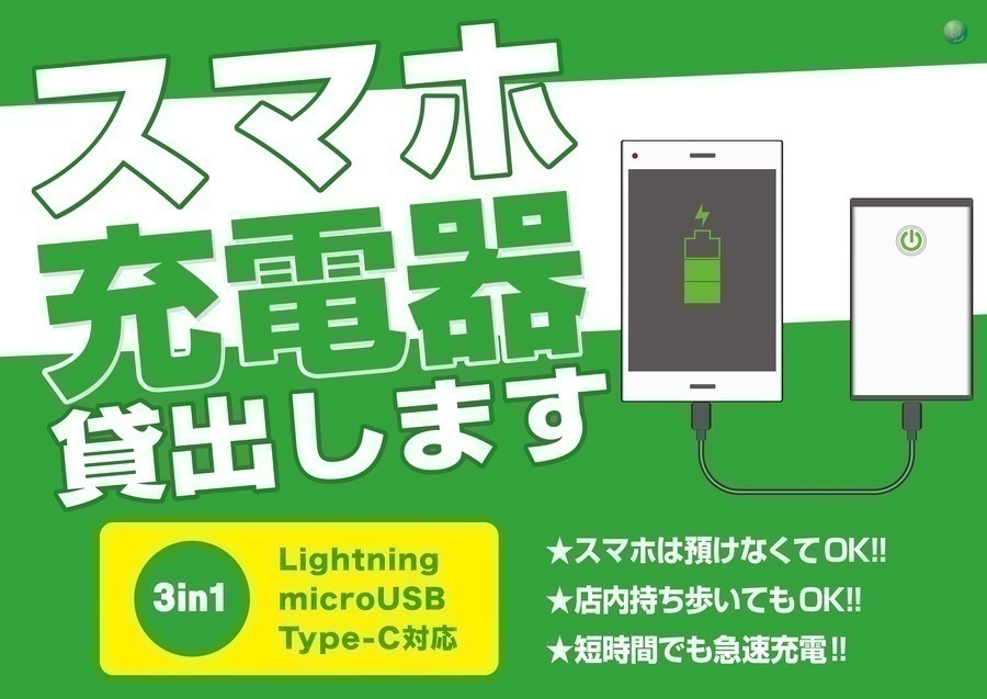 そんな時のためにスマホ充電器を貸出してます![]()