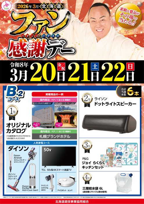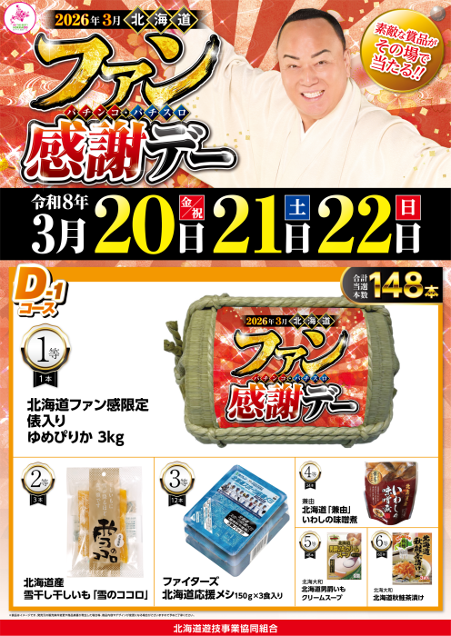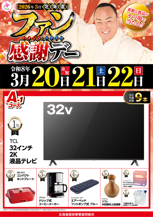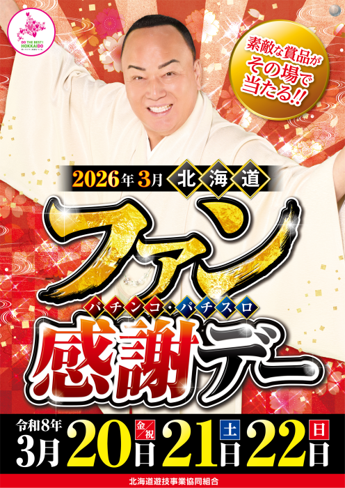北海道パチンコパチスロ ファン感謝デー 3月20日(金)~22日(日)の 3日間はぜひダイナム北見店へ