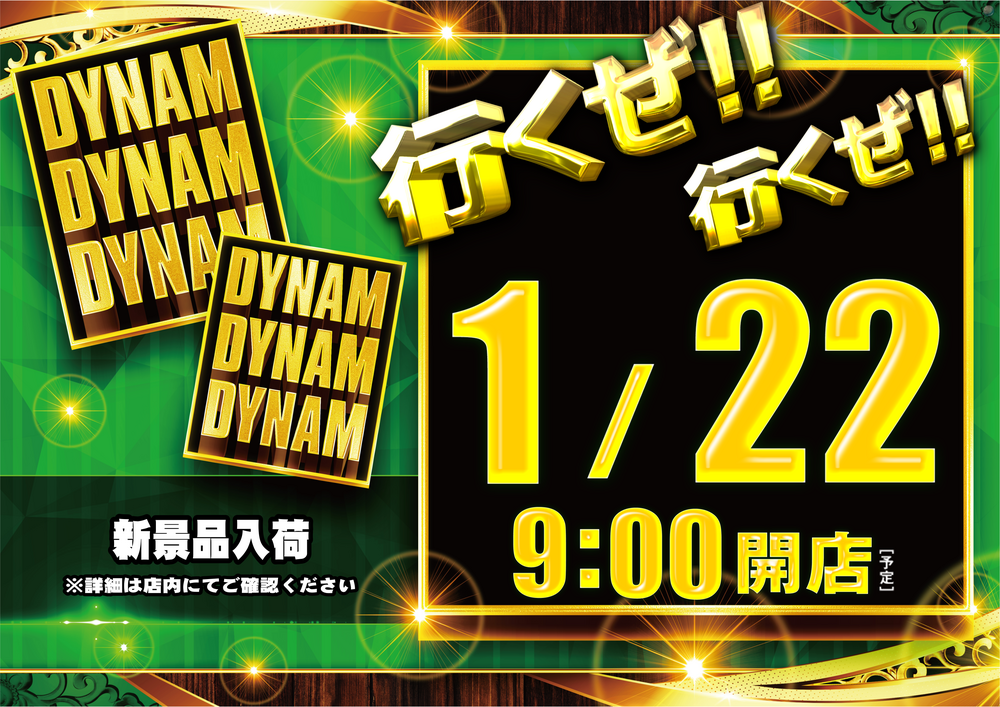1/22曜 朝9時開店(予定)