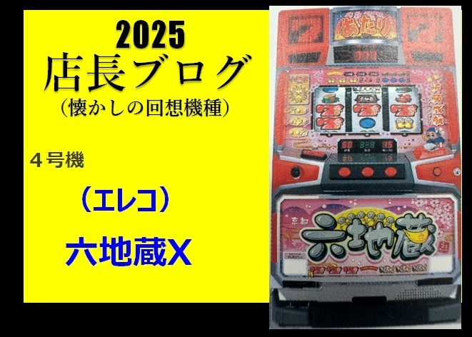 今回はエレコの超レア台AT機「六地蔵X」を回想。本機は「六地蔵タイム」と名付けられた「AT」機能搭載。当時は六地蔵の名が謎で、考えても何も浮かびません、、、。大人になって仏教の六道(地獄/餓鬼/畜生/修羅/人間/天道)であることを知るのです。だからお地蔵様の並びの数もこの数が多いのですね。(END