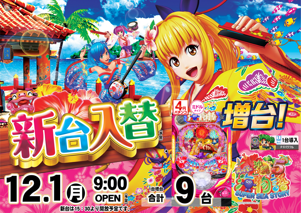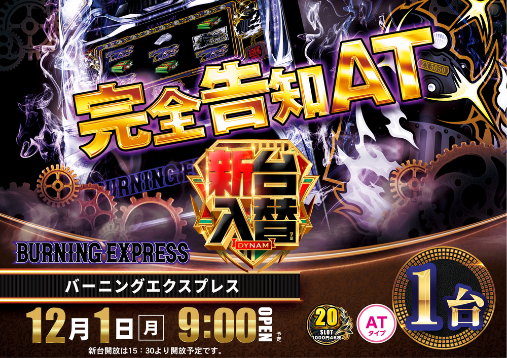 新台開放時間は15:30を予定しております