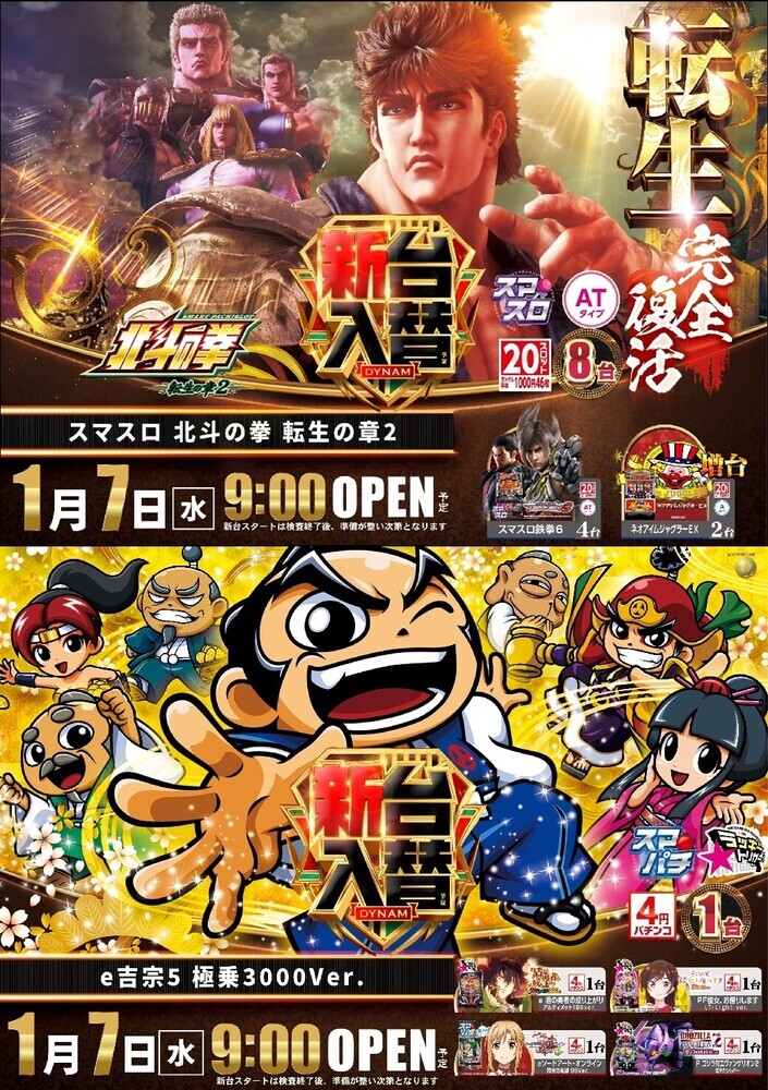 スマスロ 北斗の拳 転生の章2 1000円46枚スロット 8台 詳細はこちら