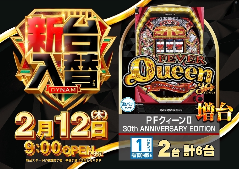 PFクィーンII 30th ANNIVERSARY EDITION 100円89玉パチンコ 2台 詳細はこちら