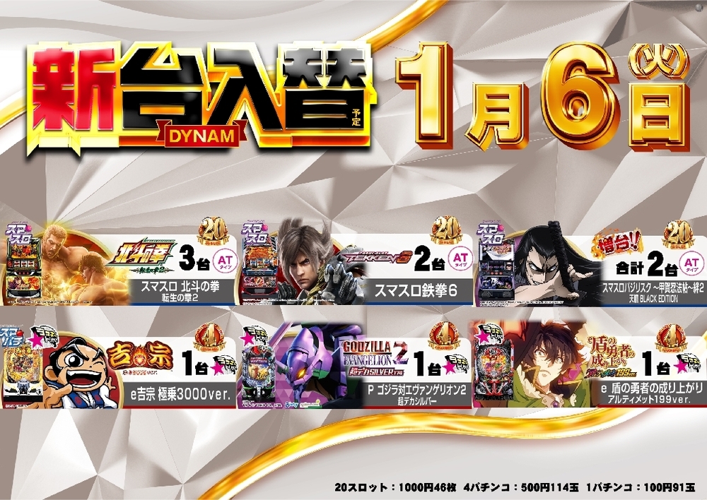20スロ (1000円46枚)
