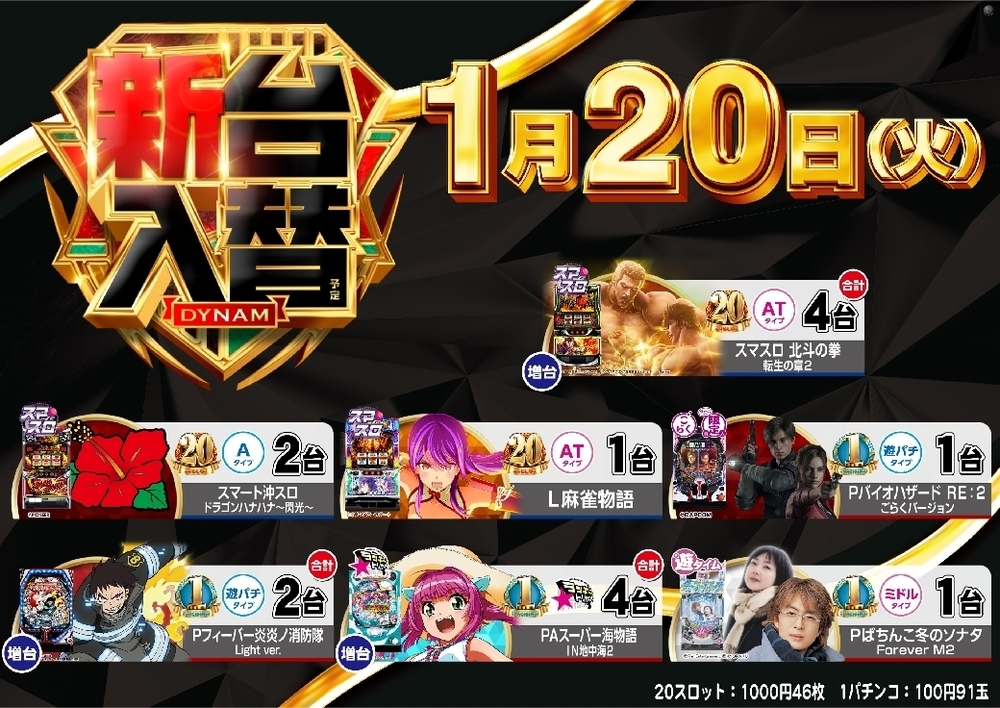 20スロ (1000円46枚)