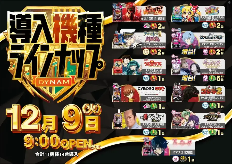 お客様、ご家族ご友人 お誘い合わせの上 ダイナム足利店 12月9日(火)新台入替(予定) 是非お越し下さいませ