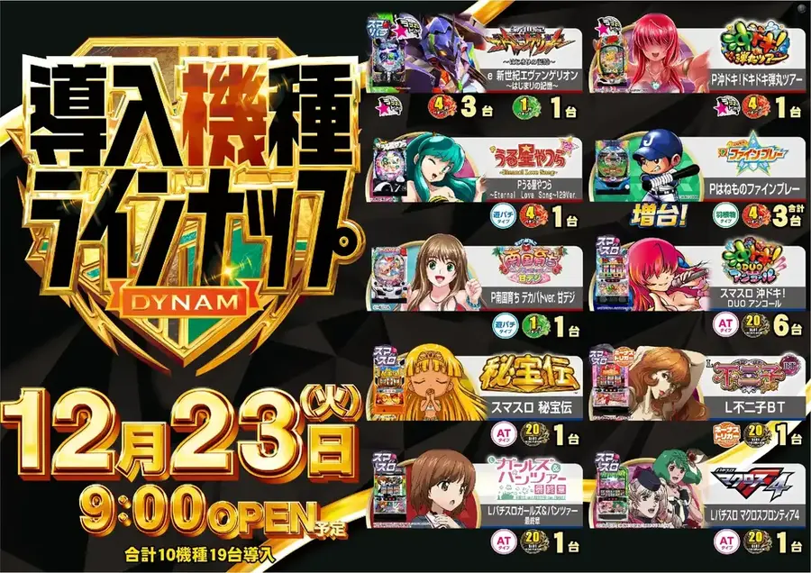 お客様、ご家族ご友人 お誘い合わせの上 ダイナム足利店 12月23日(火)新台入替(予定) 是非お越し下さいませ