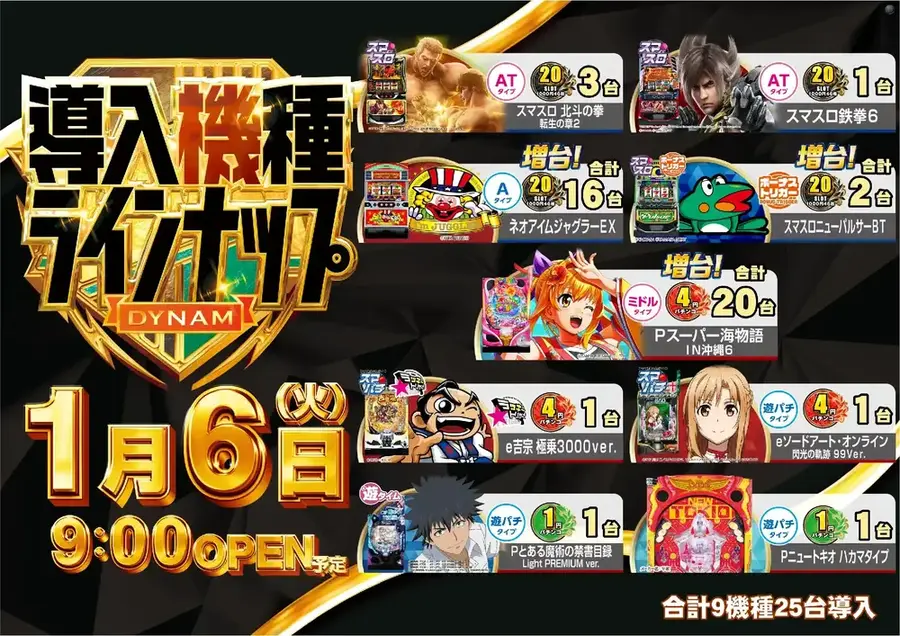 お客様、ご家族ご友人 お誘い合わせの上 ダイナム足利店 1月6日(火)新台入替(予定) 是非お越し下さいませ
