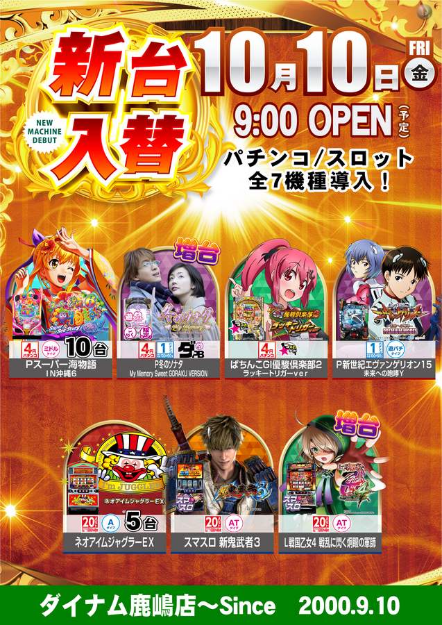 10月10日(金)の新台入替に