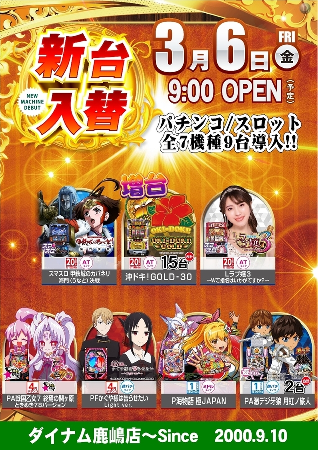 3月6日(金)の新台入替に