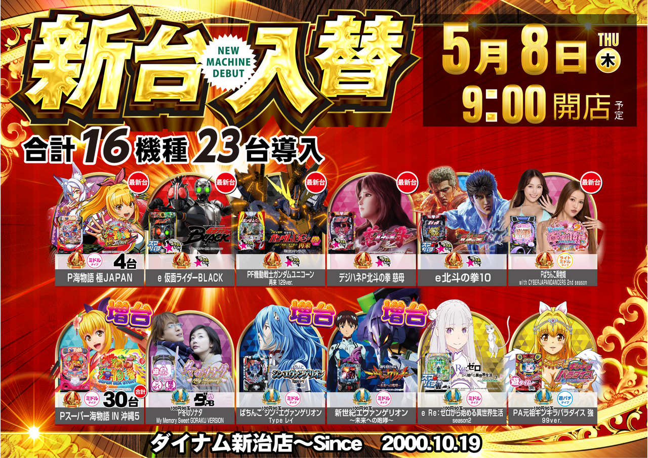 『ダイナム』は、「従来のパチンコ・スロット」を中心にお楽しみいただけるお店です。パチンコをひとつのレジャーとして楽しんでいただける空間をご提供しています。