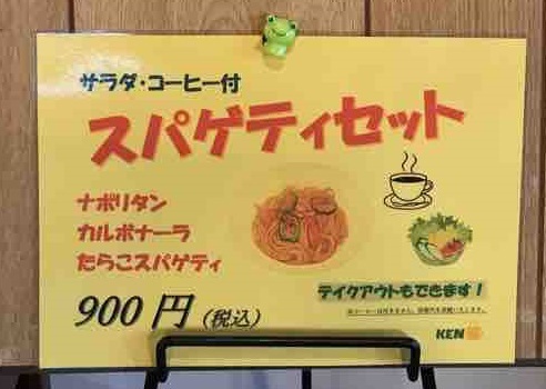 スパゲティセットは 3種から好きなものを選べ サラダとコーヒーが付いてこのお値段 このご時世にお財布にやさしい値段設定 嬉しい限りですね ほかにもトーストセット ケーキセット お腹と相談しながら、その時の気分にあった セットメニューを楽しむことが できそうですね |