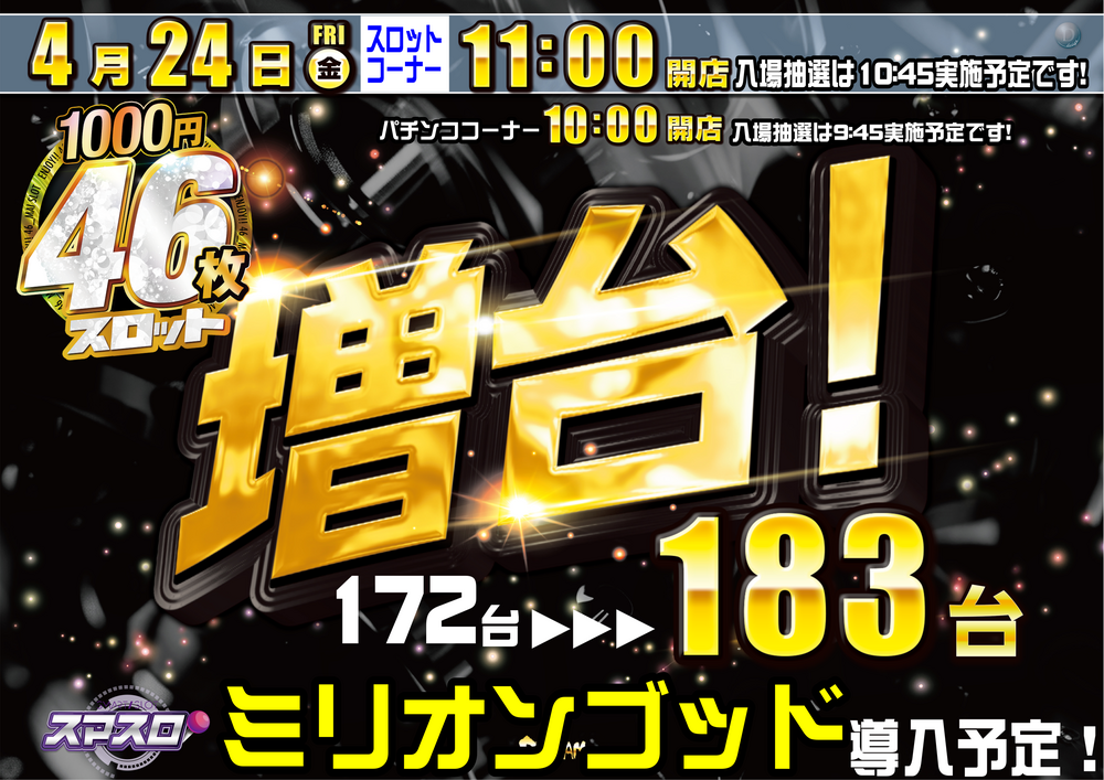 さらに 1000円46枚スロット増台
