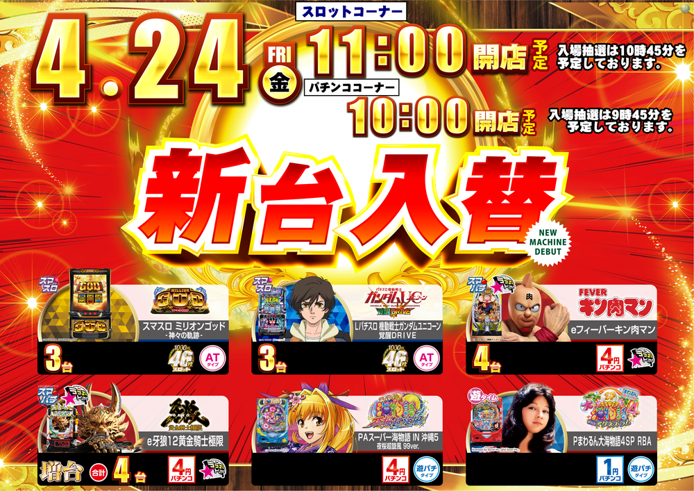 スロットコーナー11:00~開店(予定)