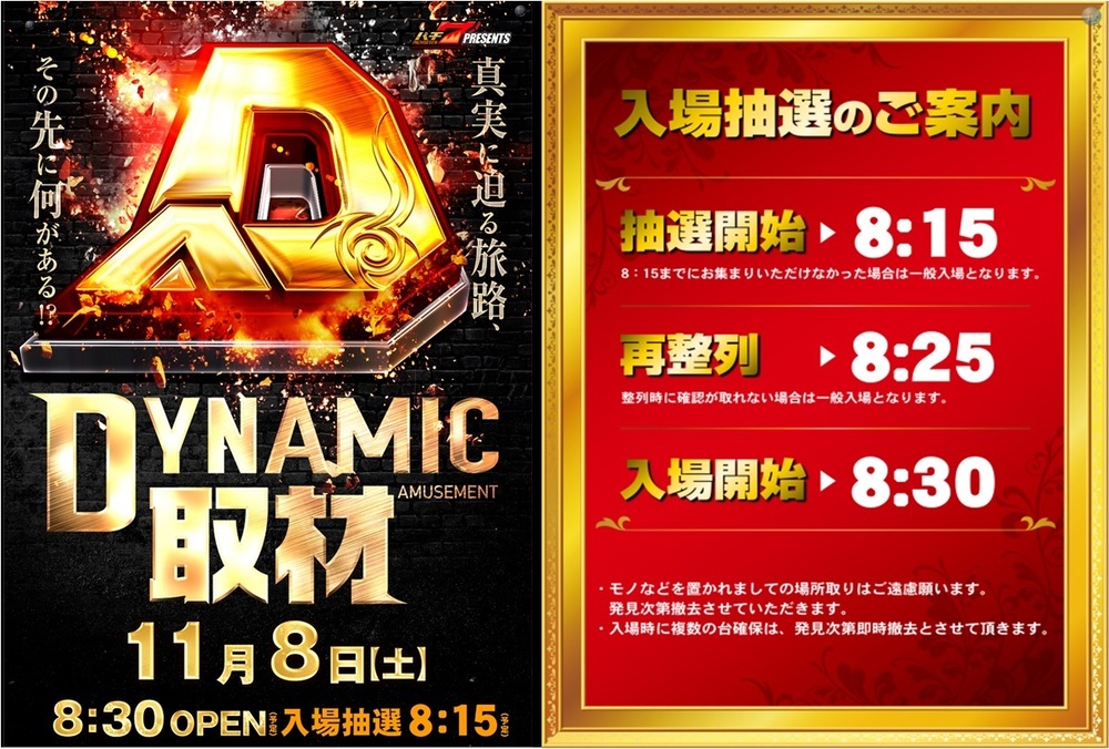 【8:30】開店(予定) 【8:15】抽選予定 入場抽選ご希望のお客様は 正面入口までお集まりください。 ※8:15以降は一般入場となります。 本日も、ご来店お待ちしております ꕤ••┈┈┈┈┈••ꕤꕤ••┈┈┈┈┈••ꕤ |