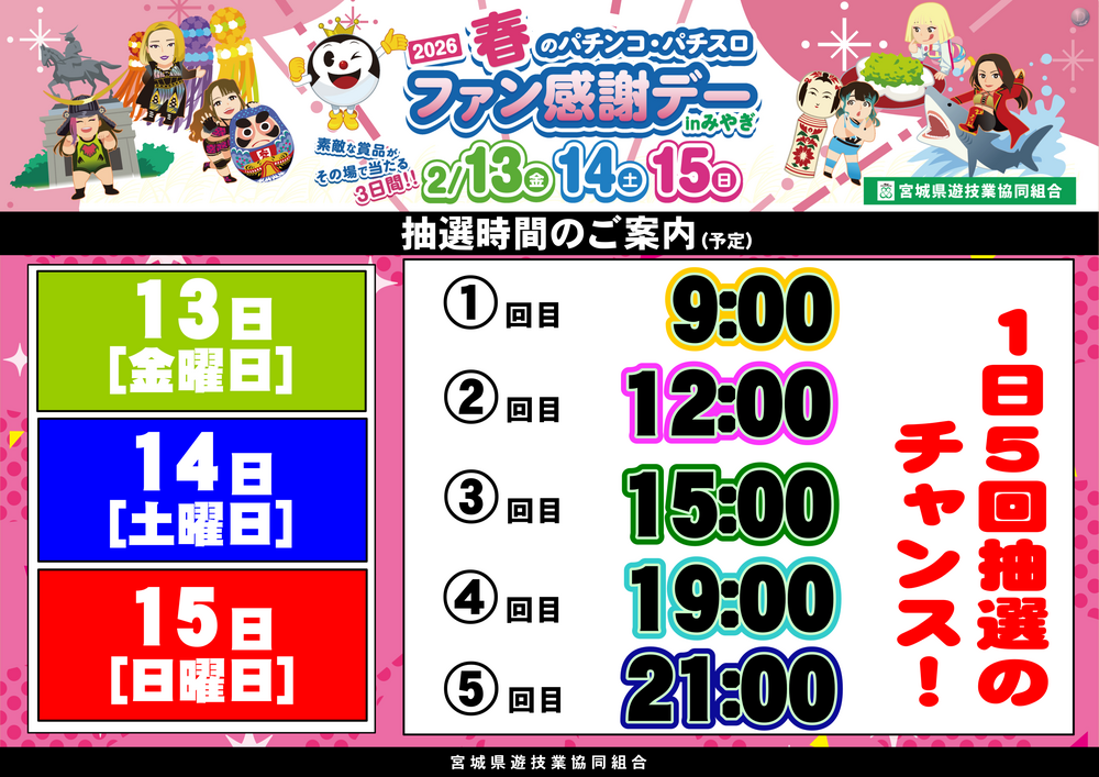 宮城県遊技業協同組合 2/13(金).14(土).15(日) 3日間開催