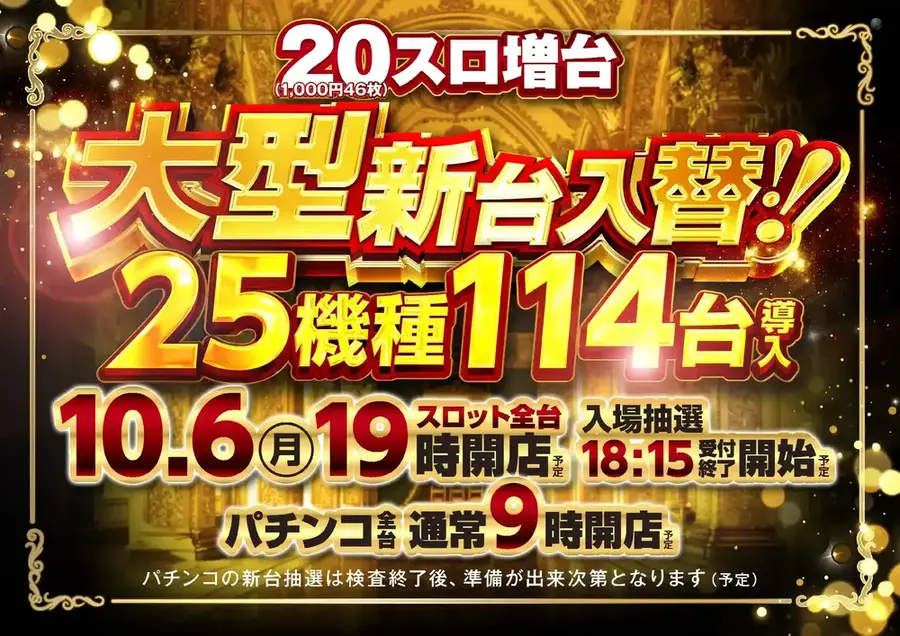 本日もダイナム相模原店のブログを閲覧いただき誠にありがとうございます。 10月6日新台入替予定!詳しくは記事をチェック!!!! |