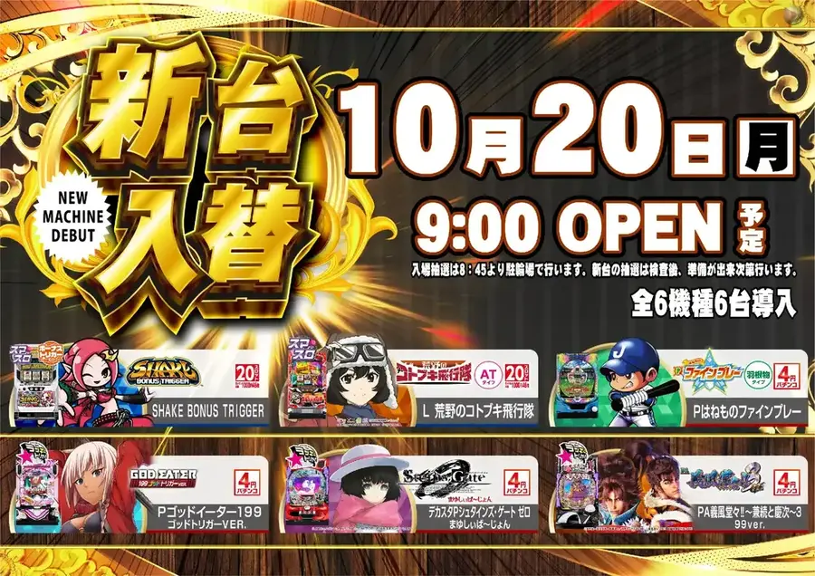 本日もダイナム相模原店のブログを閲覧いただき誠にありがとうございます。 10月20日新台入替予定!詳しくは記事をチェック!!!! |