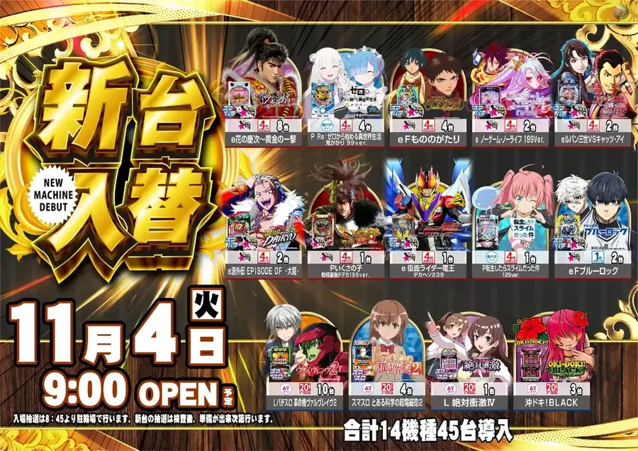 本日もダイナム相模原店のブログを閲覧いただき誠にありがとうございます。 11月4日新台入替予定!詳しくは記事をチェック!!!! |
