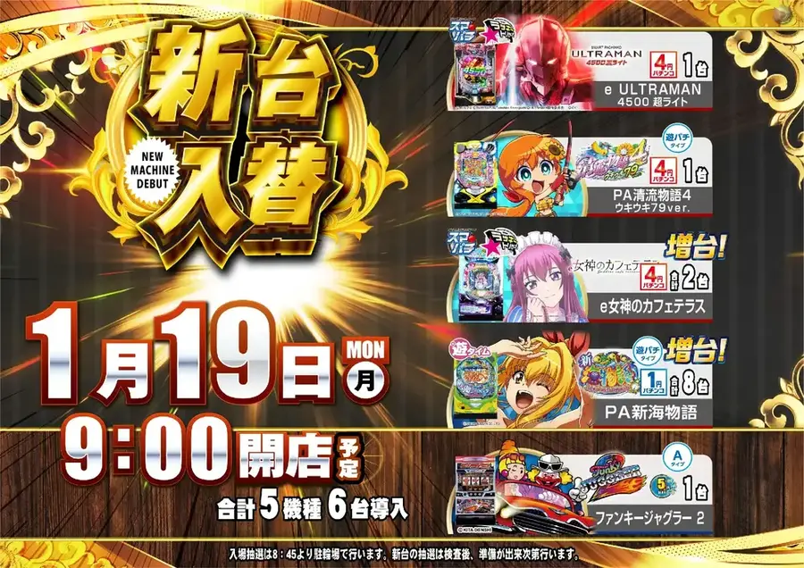 本日もダイナム相模原店のブログを閲覧いただき誠にありがとうございます。 1月19日新台入替予定!詳しくは記事をチェック!!!! |